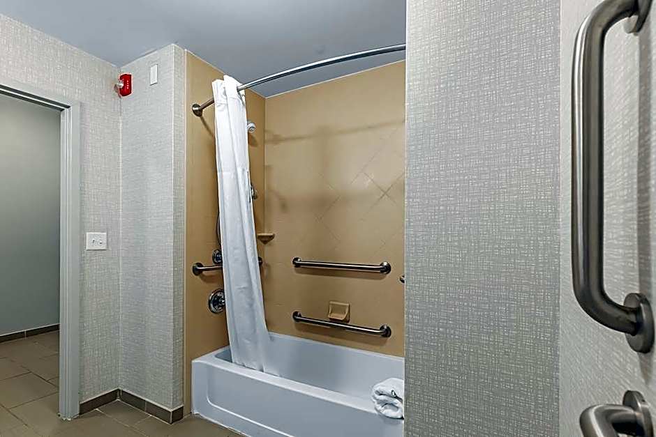 This accessible room features a microwave, small refrigerator, and a flat-screen TV with cable channels.